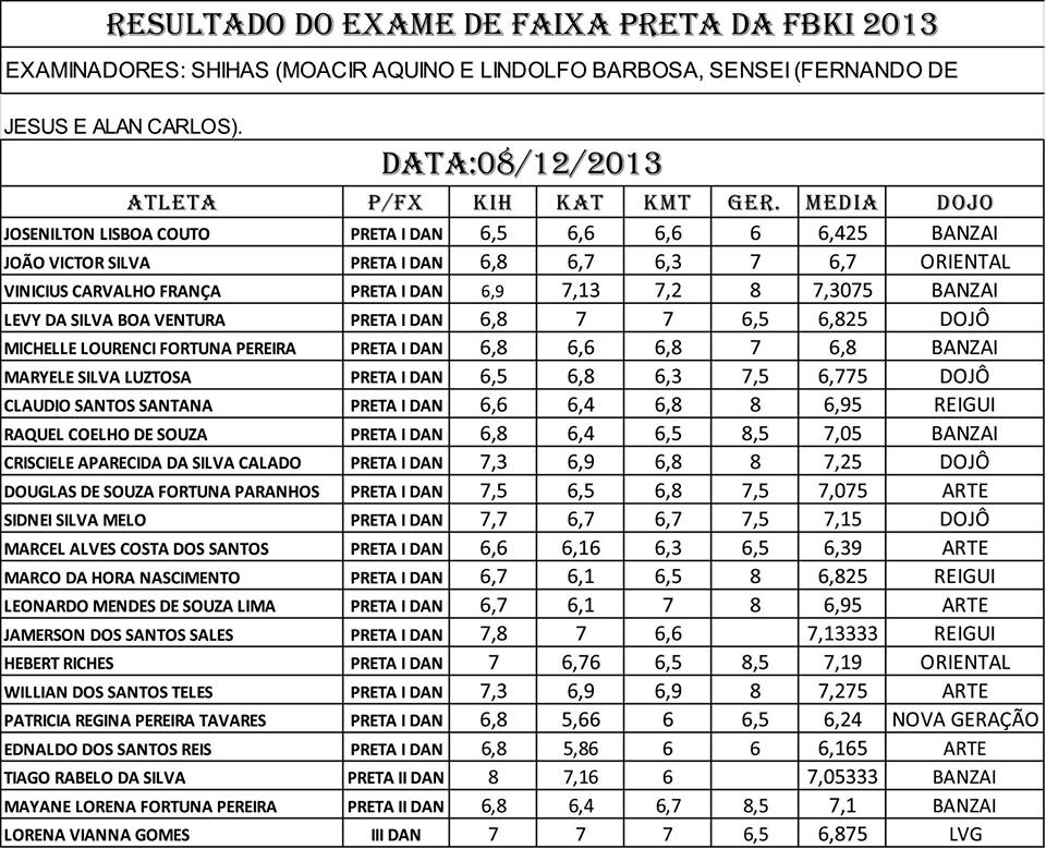 Ontem, no CSU-Liberdade foi realizado mais uma vez o tradicional Exame de Faixa Preta da FBKI e como sempre sucesso total! Tivemos de tudo um pouco: inclusão social, karatê Budô, coerência dos examinadores, filosofia e respeito as pessoas que pagam as taxas da FBKI e das associações. As revelações do exame foram: Vinicius França melhor nota geral e Josenilton Lisboa (síndrome de Down). Realizamos também a confraternização da FBKI logo após o encerramento do exame. Tivemos também uma grande surpresa! A filiação de Mais um clube do Município de Jaguaquara "JAGUÁ KARATÊ CLUBE" do Sensei Mitsuhiro Tomita. Só para lembrar, 2014 o Brasileiro é nosso! Êta ano que vai ser bom de mais sô. Rsrsrrssrsrsrsrsrs